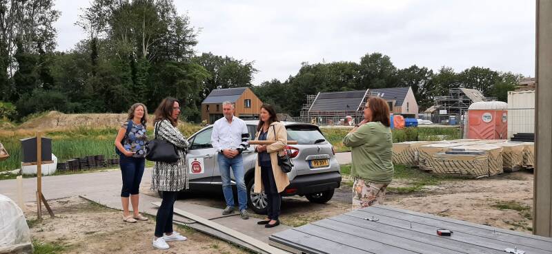 Terwijl we nog druk aan het klussen zijn om ons huis helemaal naar wens af te krijgen, hebben we ook al regelmatig aanloop. Erg gezellig! Vrienden en familie komen langs voor een kop koffie of een borrel en natuurlijk een rondleiding. Ook nieuwsgierig naar ons huis waren wethouder Karin Dekker en adviseur Marieke van Lommel. Gewapend met een bos bloemen kwamen ze onlangs op bezoek om met eigen ogen het eerste ecologisch passiefhuis in Drenthe te bezichtigen. En niks dienstauto, maar helemaal ecologisch verantwoord op de fiets! Uiteraard in gezelschap van Ruud en Sofie Room die graag inhoudelijke informatie gaven over de bouw. De dames Dekker en Van Lommel waren erg geïnteresseerd in het concept ecologisch passiefwonen en willen dit graag meer onder de aandacht brengen. Zodat straks meer mensen in Assen en omstreken zullen kiezen voor CO2 neutrale bouw.